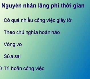 Trang chủ › Doanh nhân › Kỹ năng › Kỹ năng cần biết để quản lý thời gian hiệu quả Để quản lý hiệu quả chúng ta cần phải biết nhưng nguyên nhân làm cho thời gian của chúng ta không hiệu quả, những nguyên nhân làm lãng phí thời gian. Để quản lý hiệu quả chúng ta cần phải biết nhưng nguyên nhân làm cho thời gian của chúng ta không hiệu quả, những nguyên nhân làm lãng phí thời gian. Có thể liệt kể ra vài nguyên nhân chính: không có kế hoạch cho công việc, mục đích mục tiêu không rõ ràng, trì hoãn công việc, hay quá cầu toàn… là một trong các nguyên nhân dẫn đến lãng phí thời gian Chúng ta thường hay không tập trung vào công việc hiện tại. Khi đang làm thì nghĩ đến chơi, khi đang chơi thì lại nghĩ đến gái, khi đang … lại nghĩ đến công việc. Vì thế chúng ta không làm tốt việc gì cả. Bemecmedia.vn (Tổng hợp) Các bài viết khác Kỹ năng trả lời và nghe trong văn hóa đàm phán và thương lượng Những nguyên tắc cơ bản cho cuộc đàm phán Mẹo tránh hàng tồn kho Nghệ thuật và kỹ xảo trong đàm phán Làm gì khi đàm phán rơi vào bế tắc Kỹ năng làm việc nhóm và cách phát triển nhóm (Phần 1) Kỹ năng làm việc nhóm & cách phát triển nhóm (Phần 2) Giúp nhân viên có thêm động lực làm việc bằng cách nào? Khó khăn trong việc tổ chức hoạt động nhóm Thay đổi tư duy để làm việc nhóm hiệu quả Giúp nhân viên phát triển khả năng tiềm ẩn và động lực làm việc Những thói quen cần bỏ để năng suất làm việc tăng gấp đôi CV tất cả các nhà tuyển dụng đều muốn đọc Năm kiểu người cơ bản trong hoạt động doanh nghiệp Những kiểu người có thể mãi mãi thất nghiệp Làm thế nào để gây được ấn tượng với cấp trên 10 cách thức tạo động lực cho nhân viên Kỹ năng kiểm soát cảm xúc của doanh nhân Những nguyên tắc cơ bản để có một cuộc họp hiệu quả Kinh doanh qua website cần lưu ý những gì « Đầu Trước 1 2 3 4 5Tiếp Cuối »